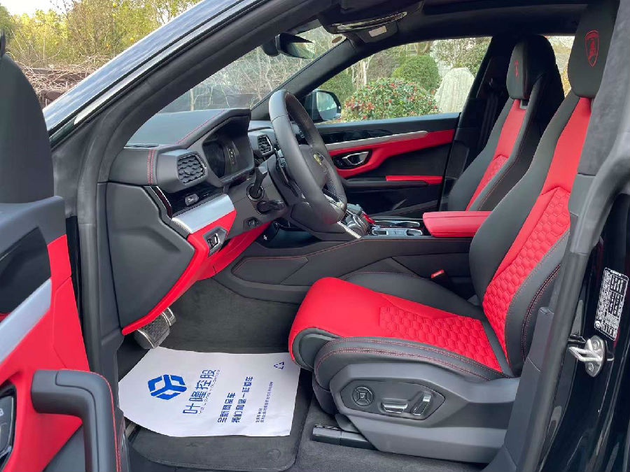 车内撞色的设计与外观形成了呼应,内饰多处都配有深色阳极氧化铝装饰全新哑光碳纤维,看起来很分诱人。座椅采用了Alcantara材质真皮材质包裹,头枕还配有品牌Logo车型标识,这些都是Urus哑光漆特别版专属的配置。