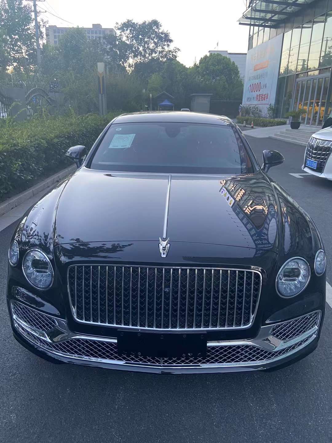 宾利飞驰采用了最新的家族式设计,分体式头灯的造型与现款欧陆GT相似,圆形大灯组整体灵感来自水晶切割设计风格,采用矩阵式LED光源。大尺寸的直瀑式镀铬前格栅造型规整,与角度垂直的车头相得益彰。前保险杠下方进气口同样由大量镀铬材质覆盖,而内部也由镀铬饰条所分割,视觉效果十分夸张