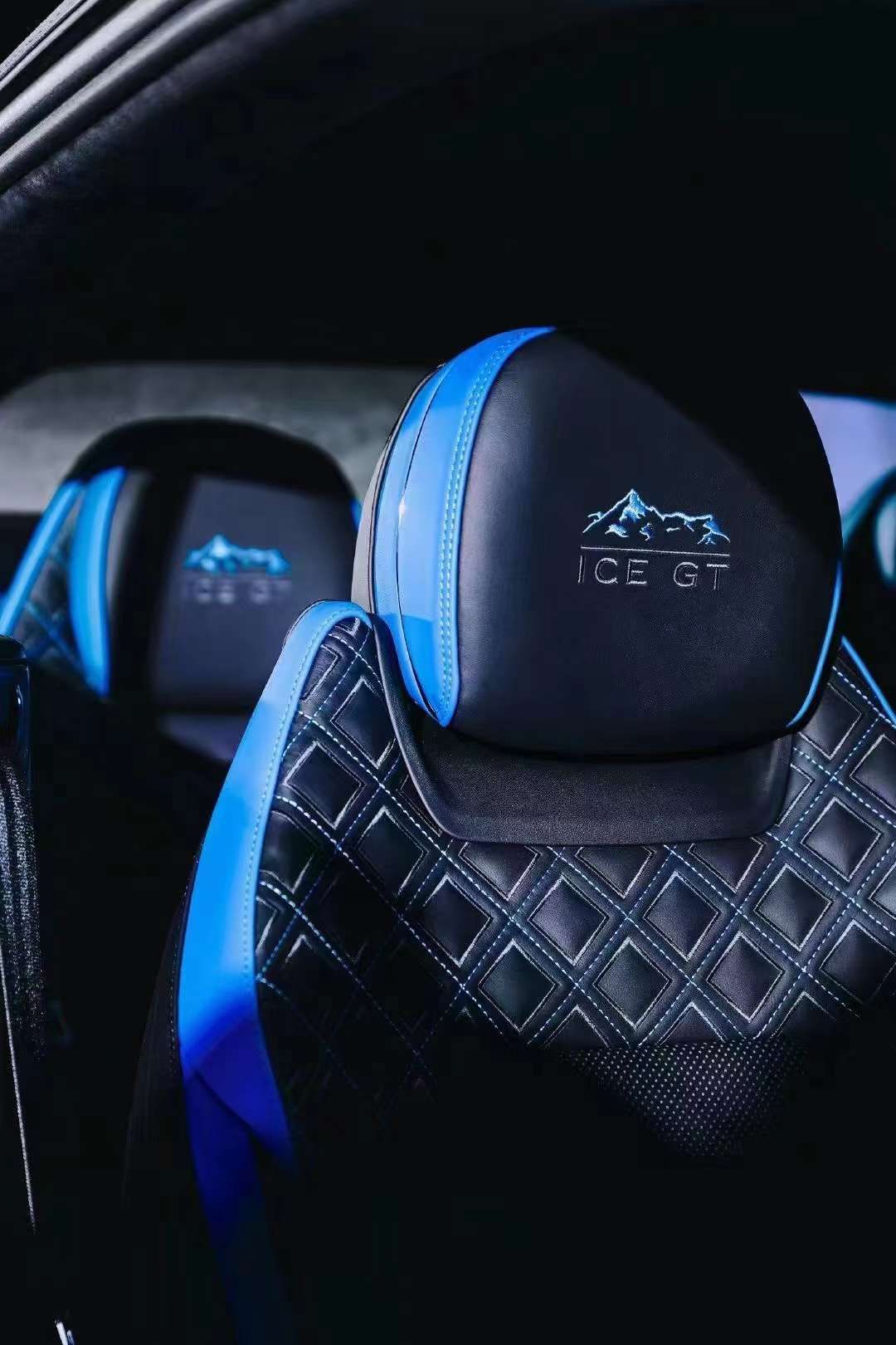 相同的黑色和蓝色主题在内部继续。虽然几乎整个内饰都是黑色的,但蓝色元素被放置在座椅和空调通风口的侧面。同样的蓝色“Ice GT”标志将被放置在头枕、门槛和中控台上。