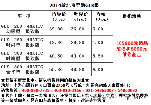 有这样一款车,当你看到它以后,会很不情愿用“中性”一词去形容它。因为它直来直去的个性非常鲜明,每当看到它都不自觉的去瞟上几眼。这究竟是哪款车呢?它就是已被多数人所认可的合资SUV——北京奔驰GLK。叶隆汽车旗下叶隆名车行狂降6万,你还犹豫什么!