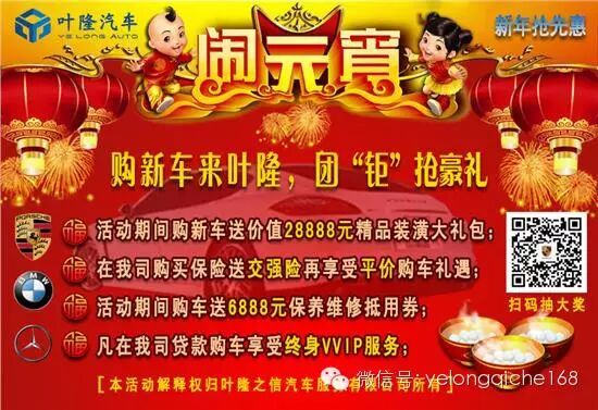 春节的长假刚刚过去,又迎来传统的元宵节,又称为小正月、元夕或灯节,是春节之后的第一个重要节日。这个节日怎么过,想买台车出去逛逛花灯,价格不好,现车也没有,怎么办?叶隆保时捷现货中心Macan现车本周优惠促销来袭,机会难得,赶紧秒吧。咨询热线:400-888-7738