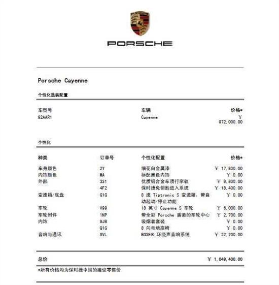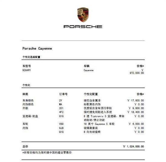 配置部分,据悉保时捷新款卡宴将全系标配全景倒车影像等配置。动力系统方面,新款卡宴Cayenne搭载了3.0L V6机械增压发动机,其最大输出功率为333马力,峰值扭矩为440牛·米,0-100km/h加速时间为6.9秒;新款卡宴Cayenne S车型搭载的是3.6L V6双涡轮增压发动机,其最大输出功率为420马力,峰值扭矩为550牛·米,0-100km/h加速时间为5.5秒;而新款卡宴Cayenne Turbo则配备了4.8L V8双涡轮增压发动机,最大输出功率为520马力,峰值扭矩为750牛·米,0-100km/h加速时间仅为为4.5秒。