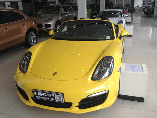 叶隆保时捷中心店内保时捷Boxster促销,现车充足、颜色齐全。目前购车保时捷Boxster最高综合优惠14.4万元。购车享受新车贷款补贴,旧车置换补贴、装潢大礼包、保养维修抵用券。感兴趣的朋友可以到店咨询购买,详情见下表:
