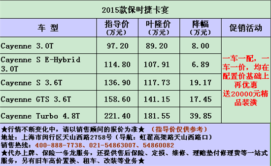 叶隆保时捷中心活动大促销,卡宴现车送豪华大礼包。