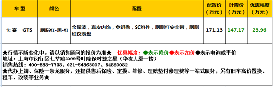 叶隆保时捷之星十一月活动促销,展厅胭脂红卡宴GTS现车优惠,欢迎新老顾客前来选购。贵宾热线:400-888-7738。