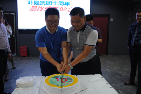 叶隆集团总裁汪小勇和叶隆集团运营总经理项科军共同切开10周年蛋糕!
