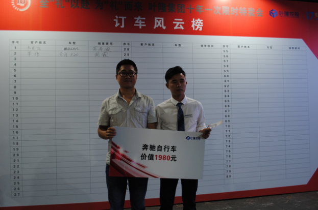 欢乐的时间总是过得很快,叶隆集团六店联合特卖会,最终成交88台。两个小时让我们见证了车友对叶隆集团的信任,两个小时让我们见证了整个销售团队的团结、合作精神,两个小时又再一次创造了销售奇迹!