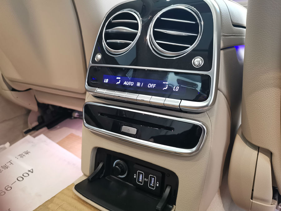 奔驰S450的三幅式方向盘有那么一点复古的味道,真皮包裹的方向盘,手感极佳,档次也得到提升。作为一台行政级座驾,新车对后排的照顾可谓是武装到了牙齿,两块多媒体液晶屏在S450车型上属于标准配备。