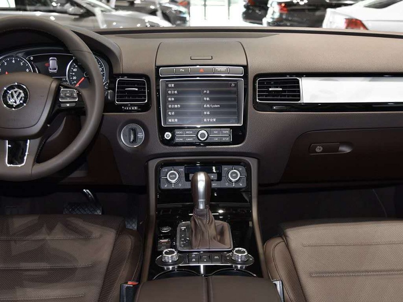 全新大众途锐的内饰运用了简单的木质材料,瞬间提升了整车内饰的档次感。整体的设计风格显得非常的年轻,同时又非常的上档次。12寸的液晶仪表加上全新设计的中控大屏,显得十分有科技感。但是,方向盘设计还是大众一成不变的风格。