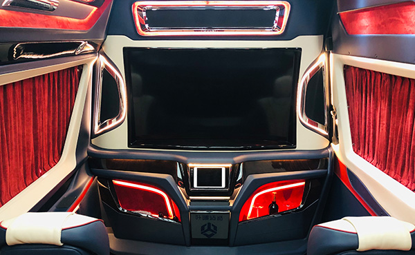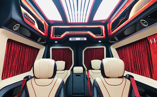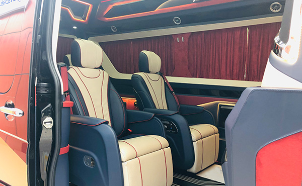 前后舱全隔屏,新款奔驰斯宾特车内犹如一间别墅。真皮实座椅软硬适中,二排头等舱可享受真皮座椅通风加热,多档按摩,三排四排可折叠打开变成一张双人大床,车舱玻璃均采用防紫外线隔热玻璃,夏天即便不开空调,也不会感到燥热