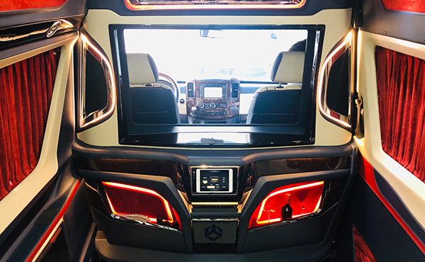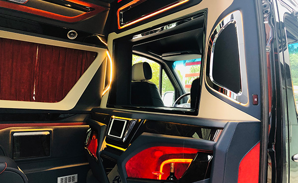 奔驰斯宾特房车车内犹如一间别墅,设备齐备五脏俱全。斯宾特改装商务车商务车一直以大空间感、奢华底蕴、商务配备完善为风尚标杆引领国际市场的设计导向,以电动联真皮沙发座椅取代一体式吧台,将欧式豪华吧台精巧内嵌于车身侧壁,贵宾舱纵横空间得到相当程度的拓展,明星大腕、商务精英在旅途中也能尽享奢华,在这个属于房车的时代。豪华一体欧式吧台,配置有SONY蓝光DVD播放器,下置进口胶囊咖啡机,可算是商旅途中一处贴心配置。全车脚下铺设的鳄鱼纹牛皮地毯在奔驰斯宾特房车上也属首次运用,行走其间那种丝毫不显拖沓的质感。