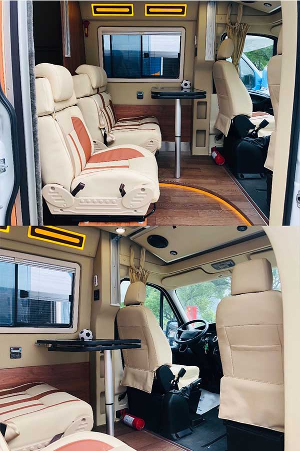 这款依维柯旅居车,按照金冠房车一惯轻量化设计理念,内饰家具全部采用轻质环保材质,浅米色内壁加上木纹色肌理饰板,清新雅致又不失温馨舒适。内部整体布局采用前部沙发会客、中置厨卫以及尾部上下床布局,安全环保,实用可靠。叶隆房车中心现车