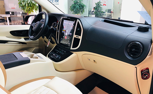 这款奔驰威霆改装商务房车采用高顶的设计思路。硕大的金属三叉星奔驰LOGO与高光泽中网相融合,相得益彰。凌厉的楔形天使翼型LED照明灯,既符合商用车的沉稳大气,又不乏奔驰轿车的动感和热情。流线型的动感车身和18英寸双5辐铝合金动轮毂,舒适和动感完全集于一身。