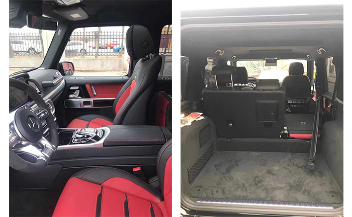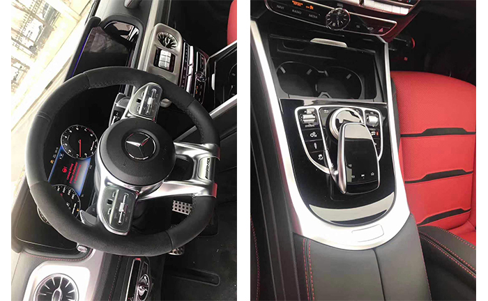 全新奔驰G63对驾乘空间也进行了优化。保留了新G500的整体设计,除配色差异外,新车还换装了全新造型的平底式AMG运动方向盘,其两侧配以打孔皮质包裹,下部镀铬装饰的造型也与新G500明显不同,看上去十分战斗。换代之际便手优化空间体验,座位配备有众多便利功能标且和符合人体工程的设计,从而提高座椅舒适性和侧向支撑效果。车内的实用空间得到了扩展,每扇门都能具备容纳1L瓶装水的装载能力。
